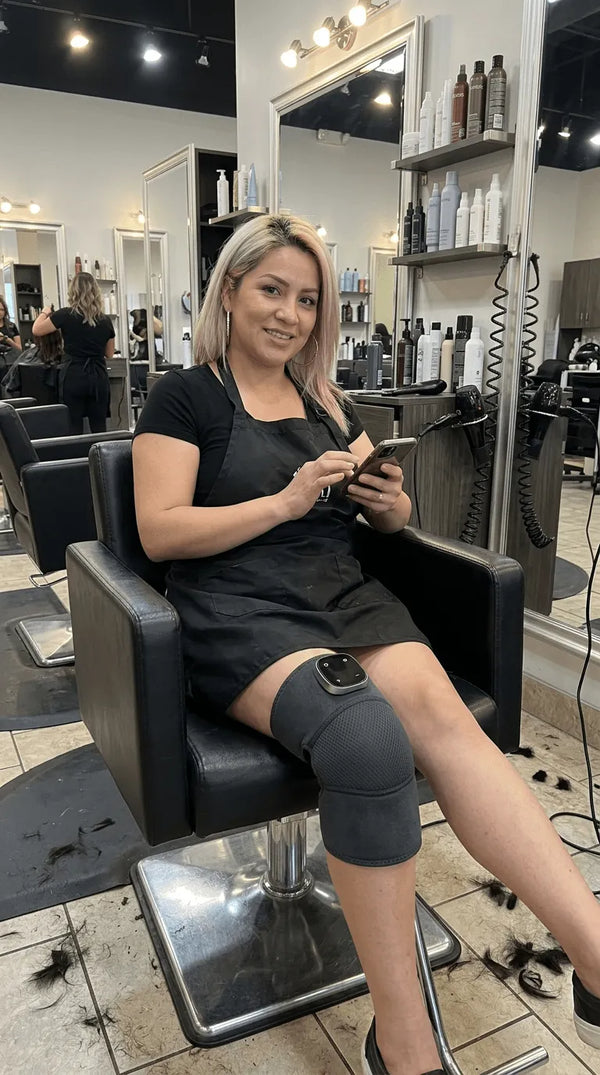 Pracuję jako pielęgniarka — po dyżurach łydki są tak opuchnięte, że ledwo zdejmuję buty. FlowEMS to jedyna rzecz, która naprawdę pomaga. 15 minut i nogi jakby odblokowane. Kupiłam drugi komplet dla kuzena, który ma problemy z krążeniem.